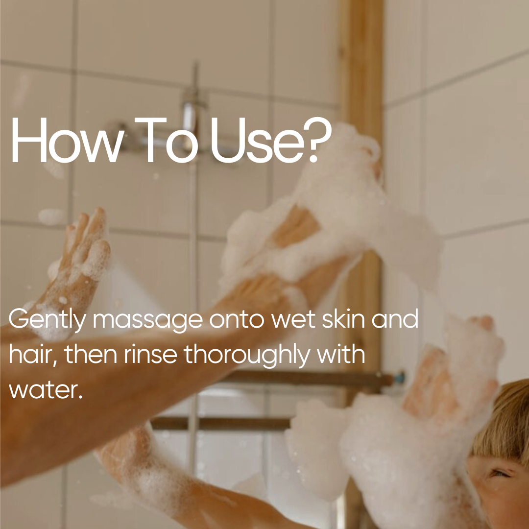 Apply a small amount during bath time. Rinse thoroughly with water.
